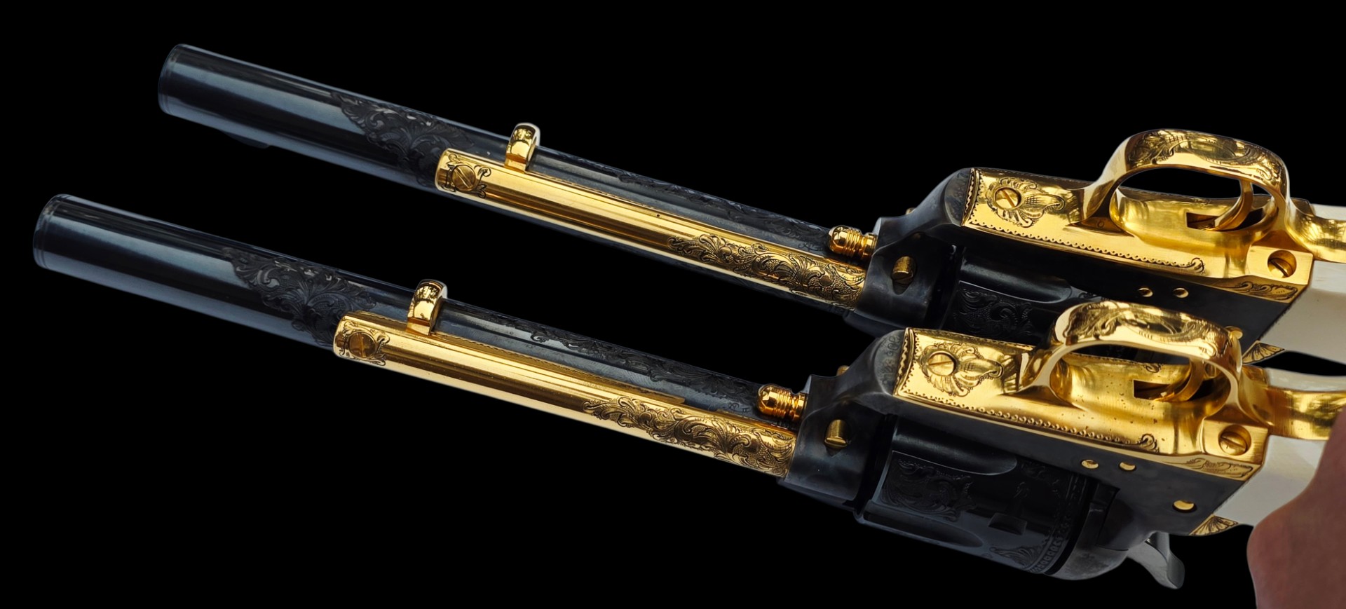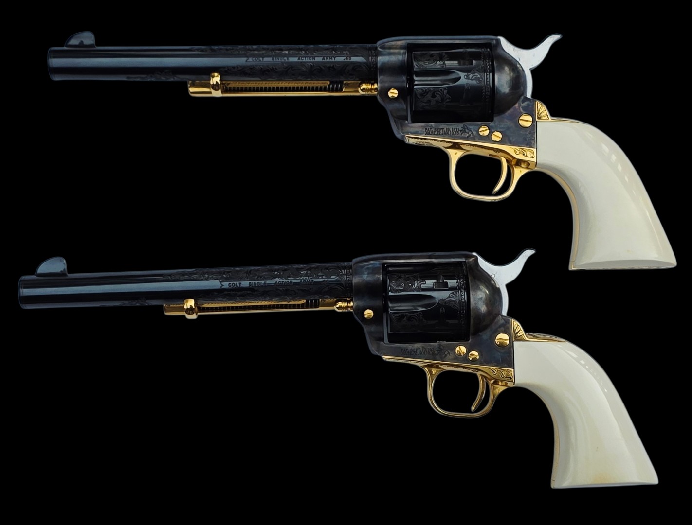 Consecutive Serial Numbered Colt SAA 45 Colt Revolvers with Ivory Skull Grips
